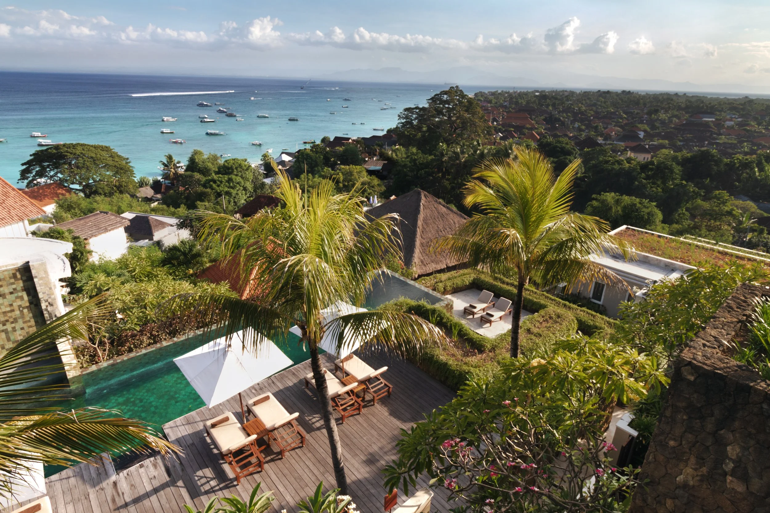 Each decadent villa set over three eye catching levels boast up to three enormous bedrooms, a semi-open living room, fully-equipped kitchen and private rooftop with incredible 180 degree views of the ocean, Mount Agung and Lembongan’s Jungut Batu village.